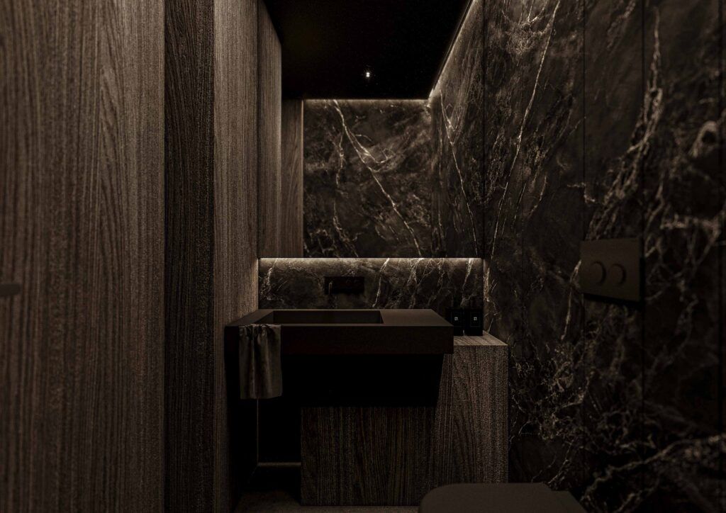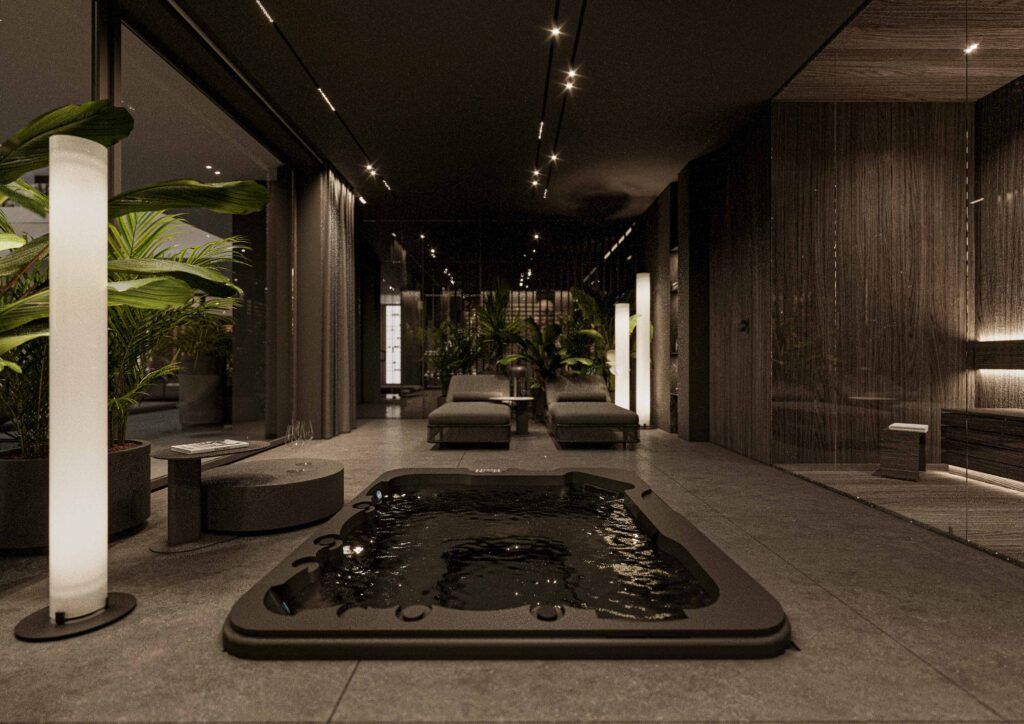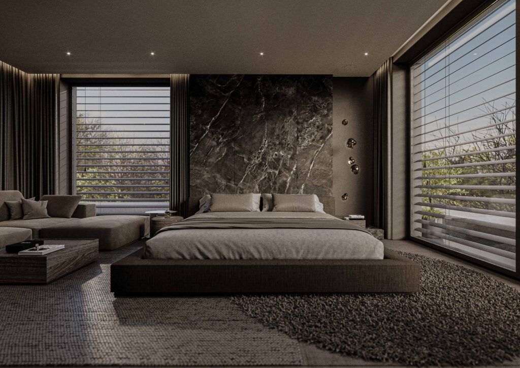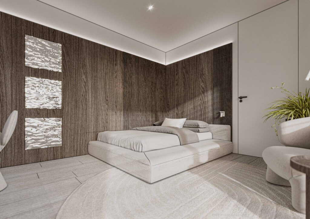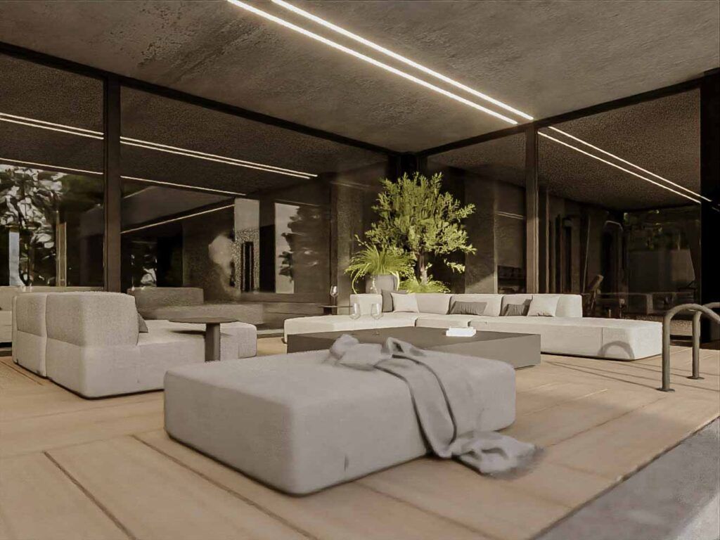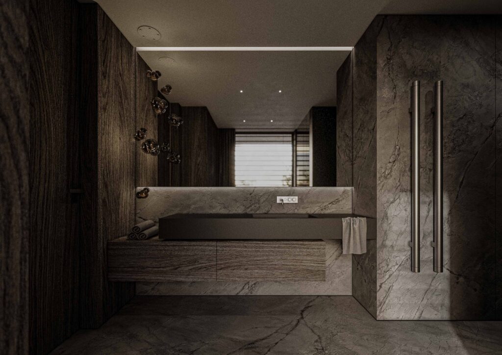 jednocześnie budując silną relację między architekturą a otoczeniem. Naturalne materiały, miękkie formy mebli oraz wielowarstwowe oświetlenie tworzą atmosferę komfortu i wyciszenia.