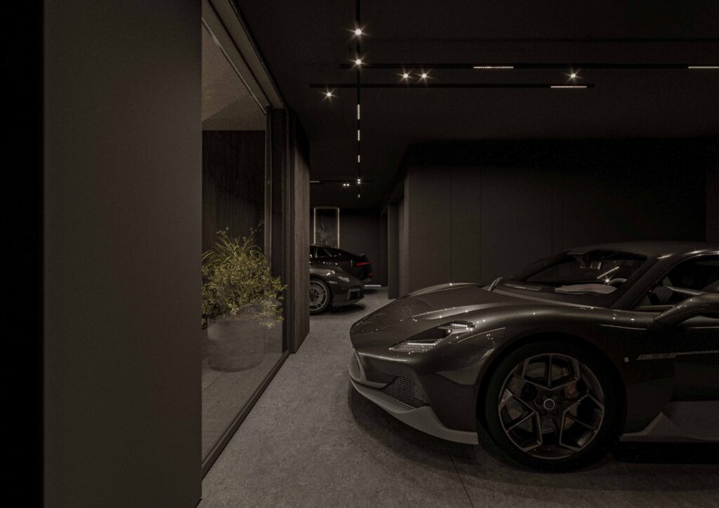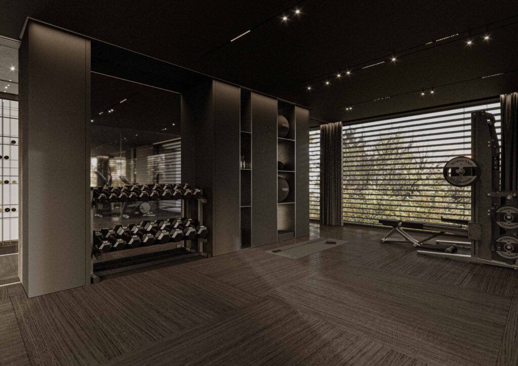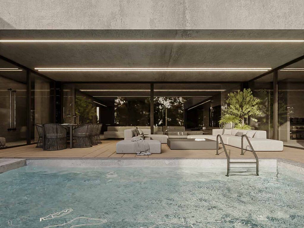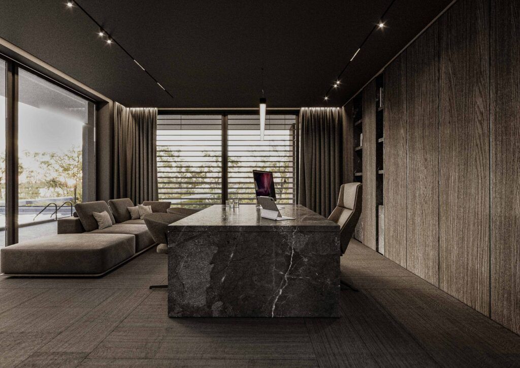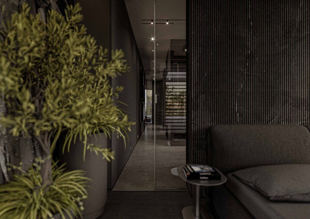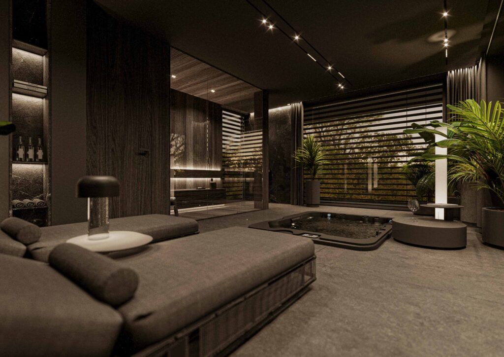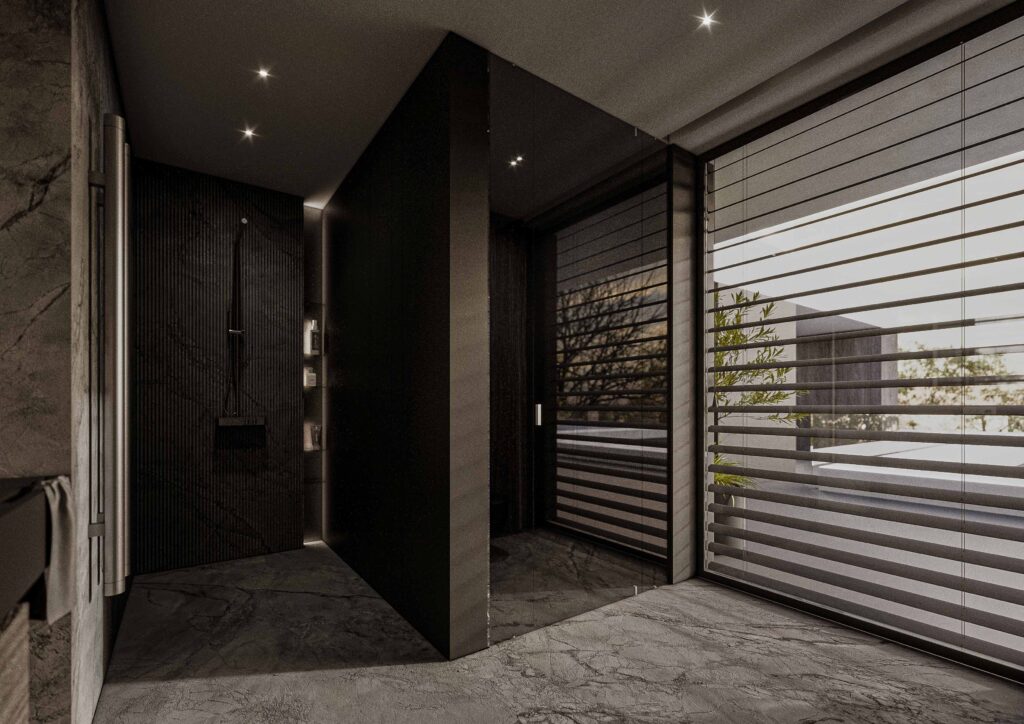 z basenem, sauną i siłownią, zaprojektowana jako domowa przestrzeń regeneracji. Willa posiada również niezależną przestrzeń biurową połączoną z showroomem, odpowiadającą potrzebom pracy i reprezentacji.