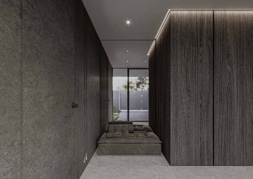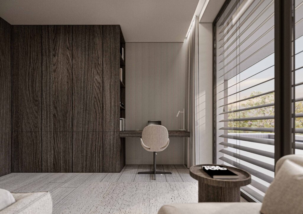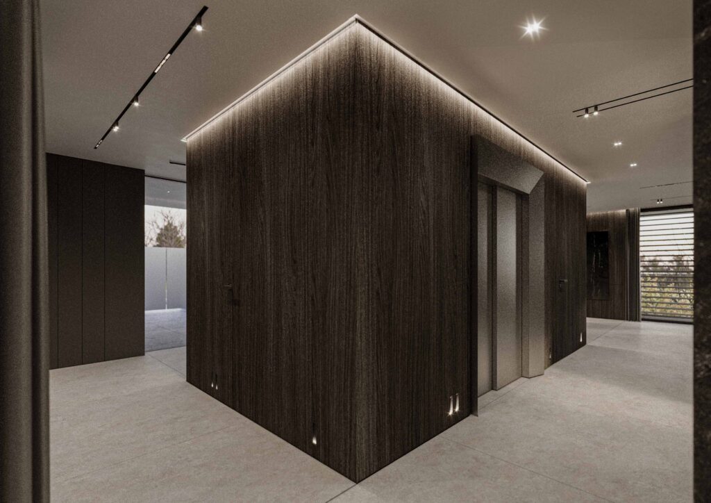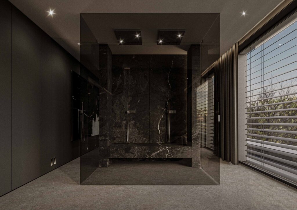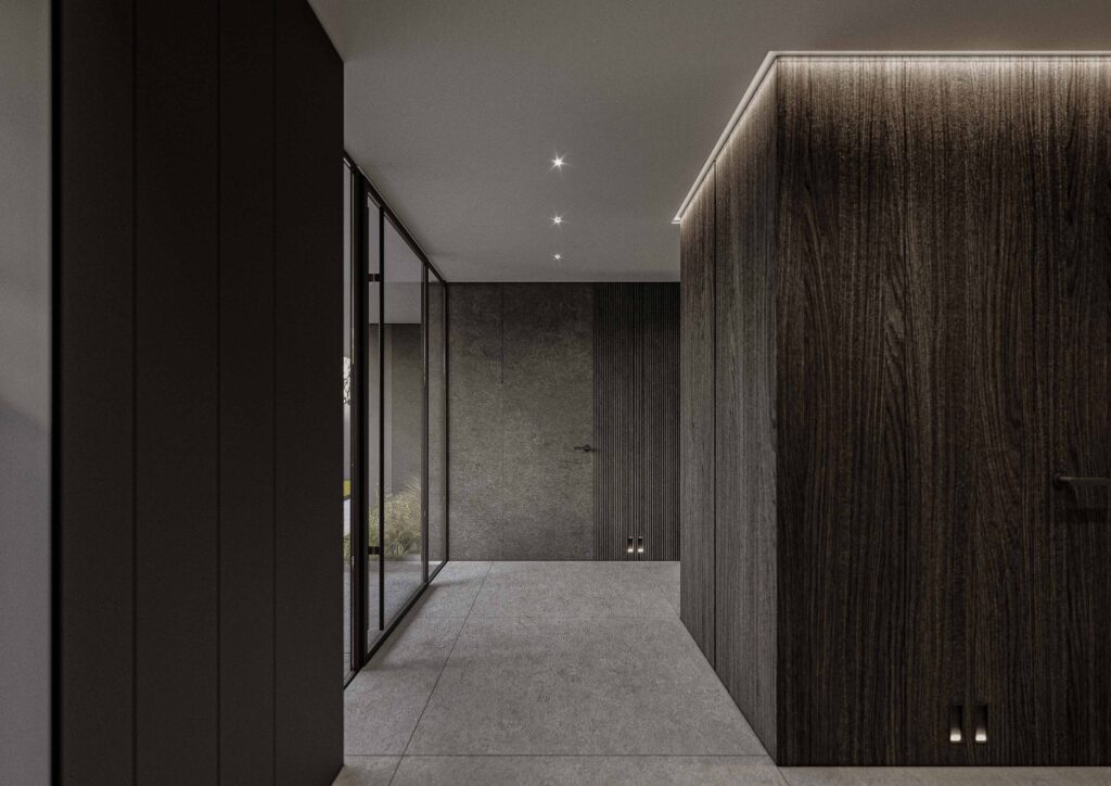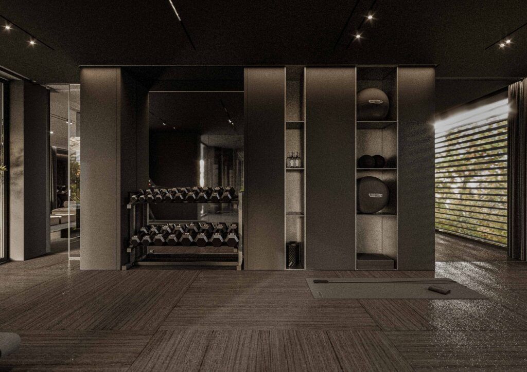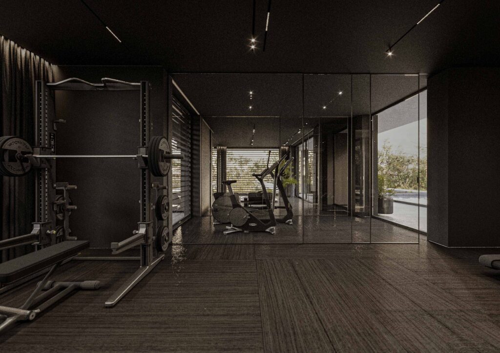 z basenem, sauną i siłownią, zaprojektowana jako domowa przestrzeń regeneracji. Willa posiada również niezależną przestrzeń biurową połączoną z showroomem, odpowiadającą potrzebom pracy i reprezentacji.
