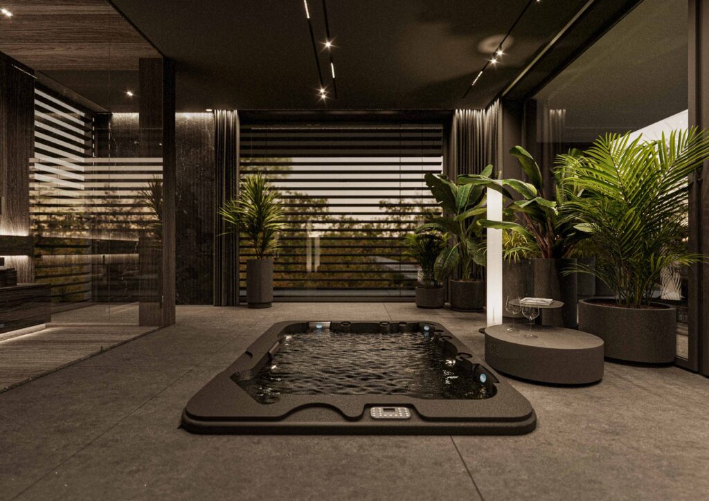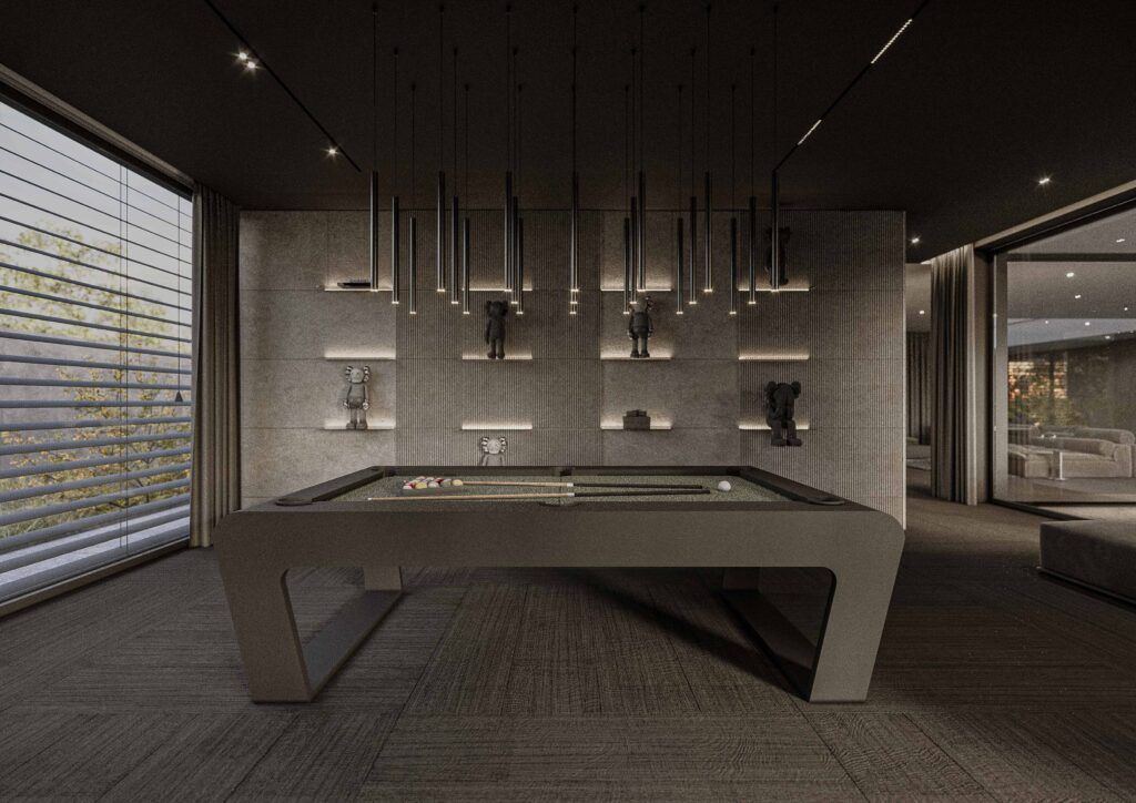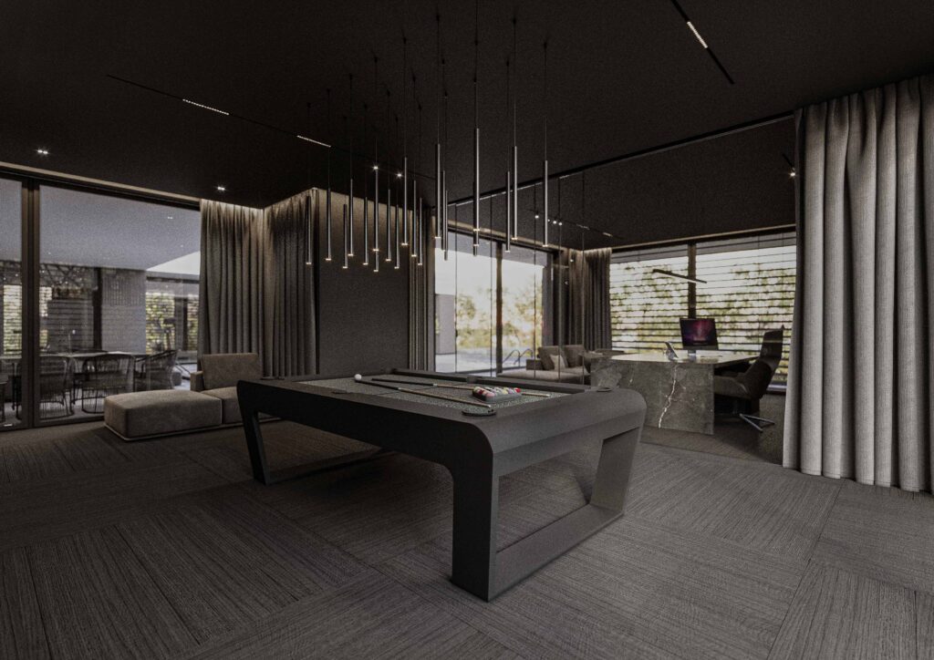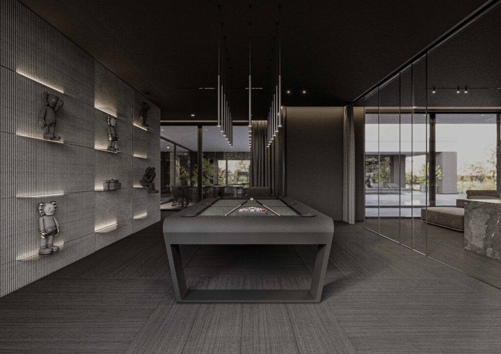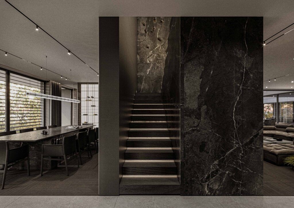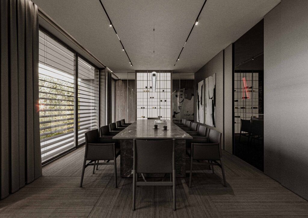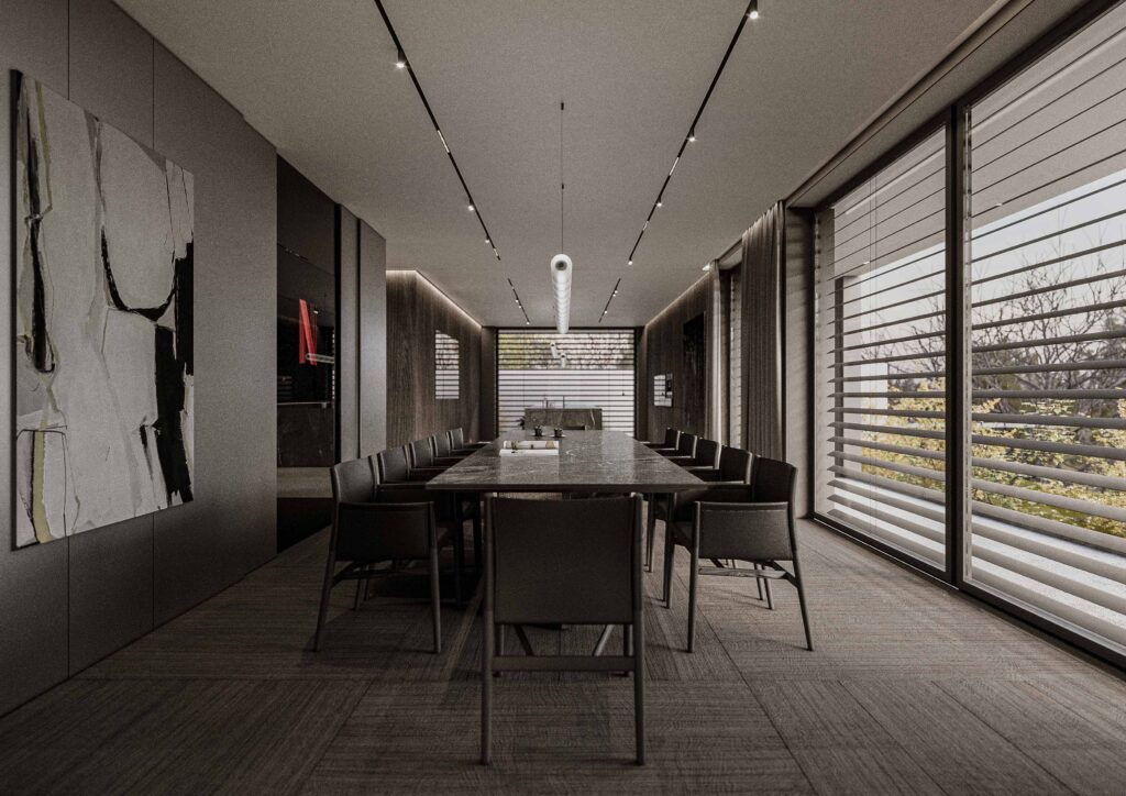 z basenem, sauną i siłownią, zaprojektowana jako domowa przestrzeń regeneracji. Willa posiada również niezależną przestrzeń biurową połączoną z showroomem, odpowiadającą potrzebom pracy i reprezentacji.
