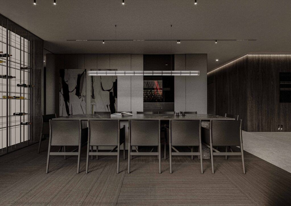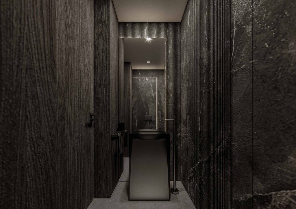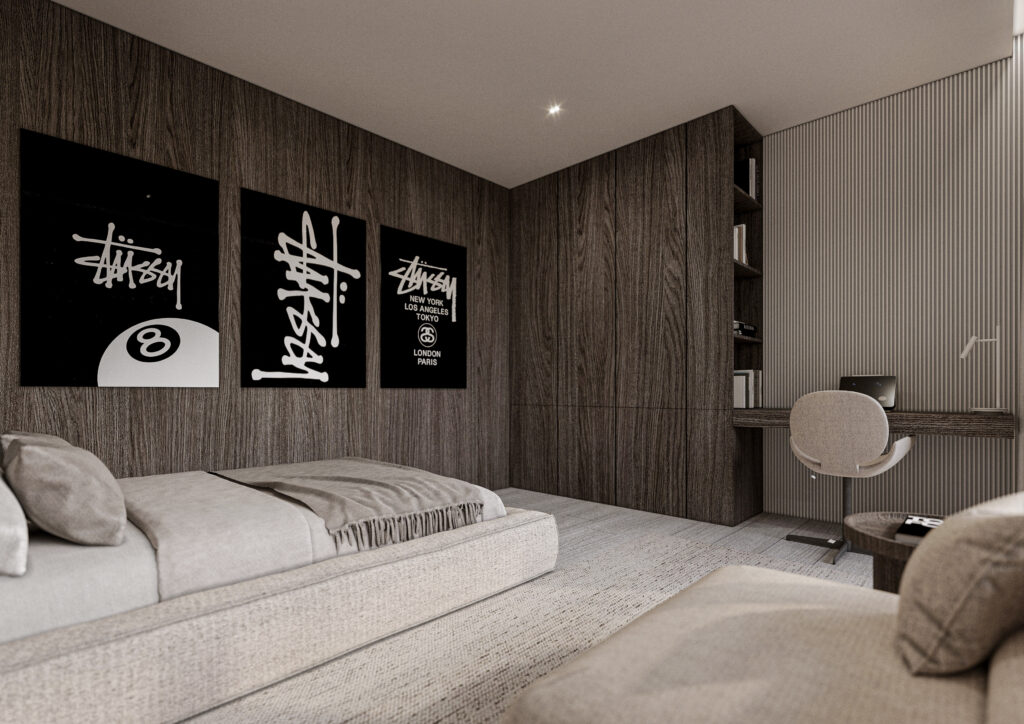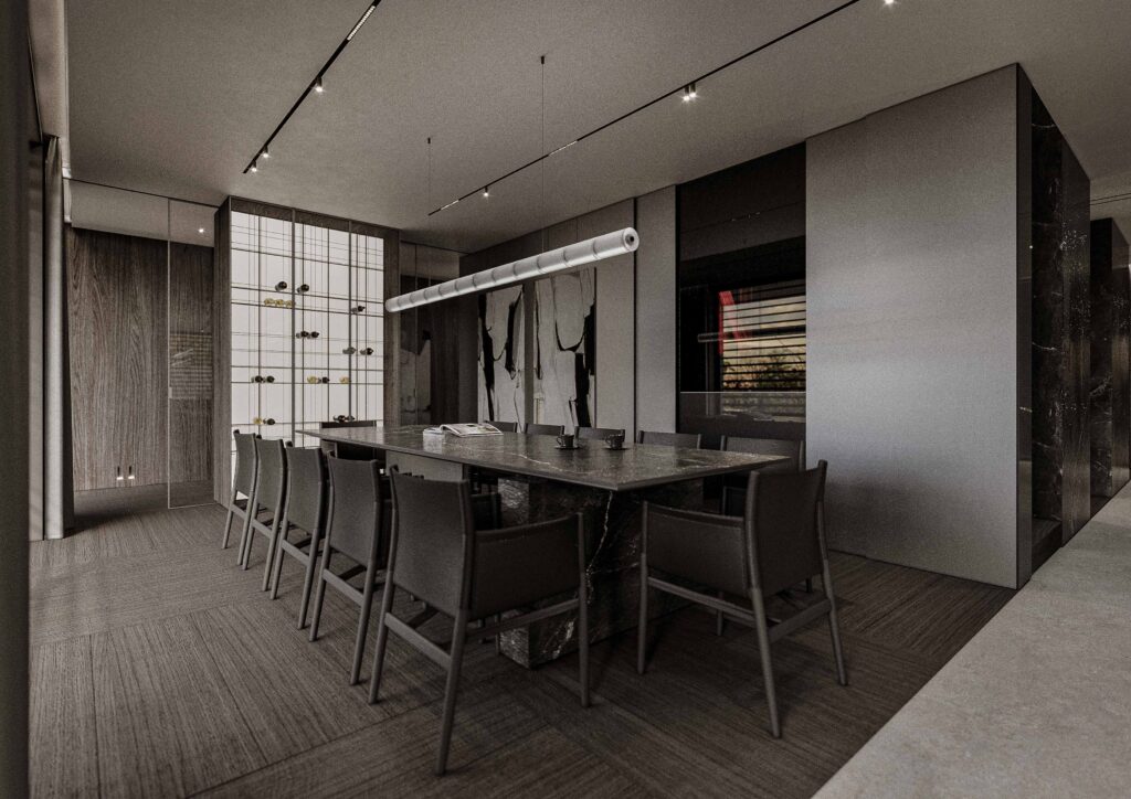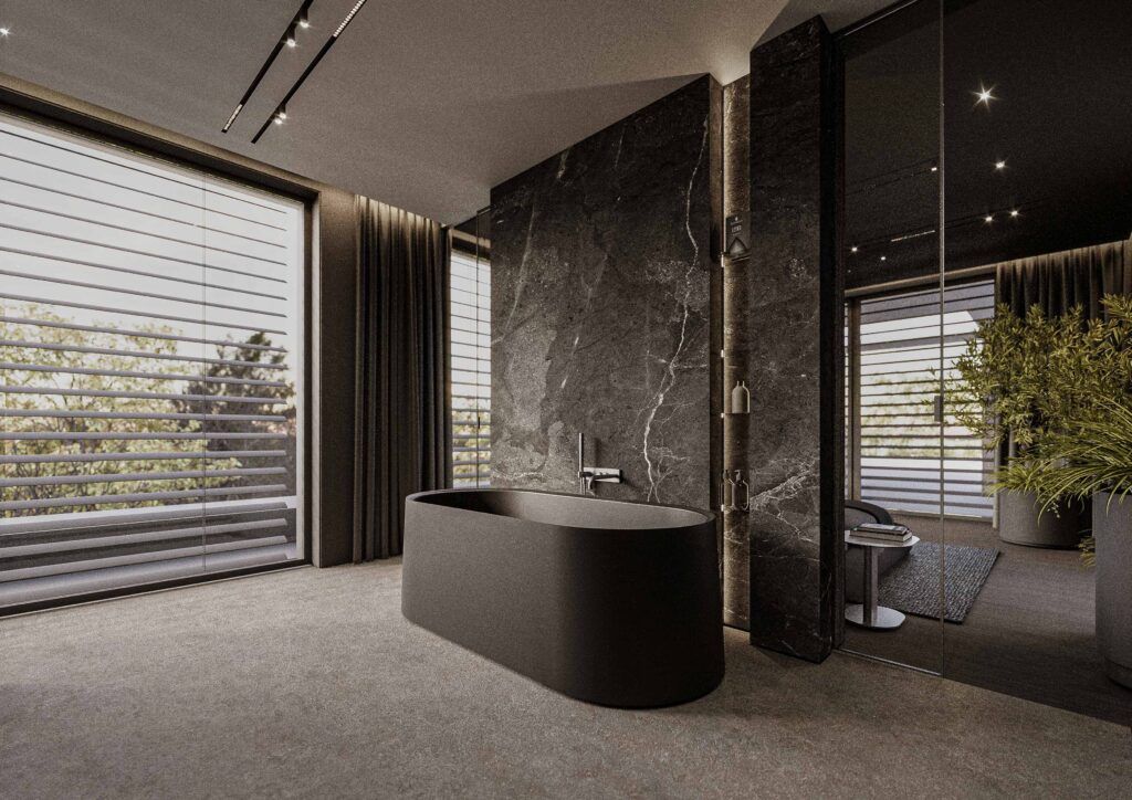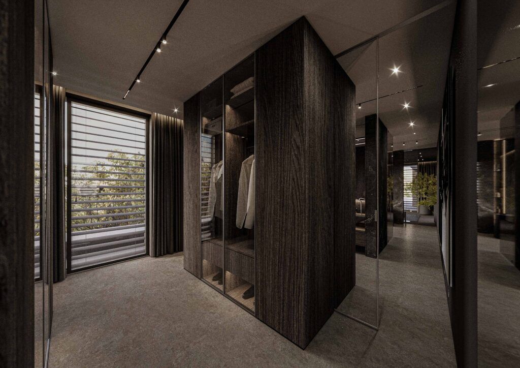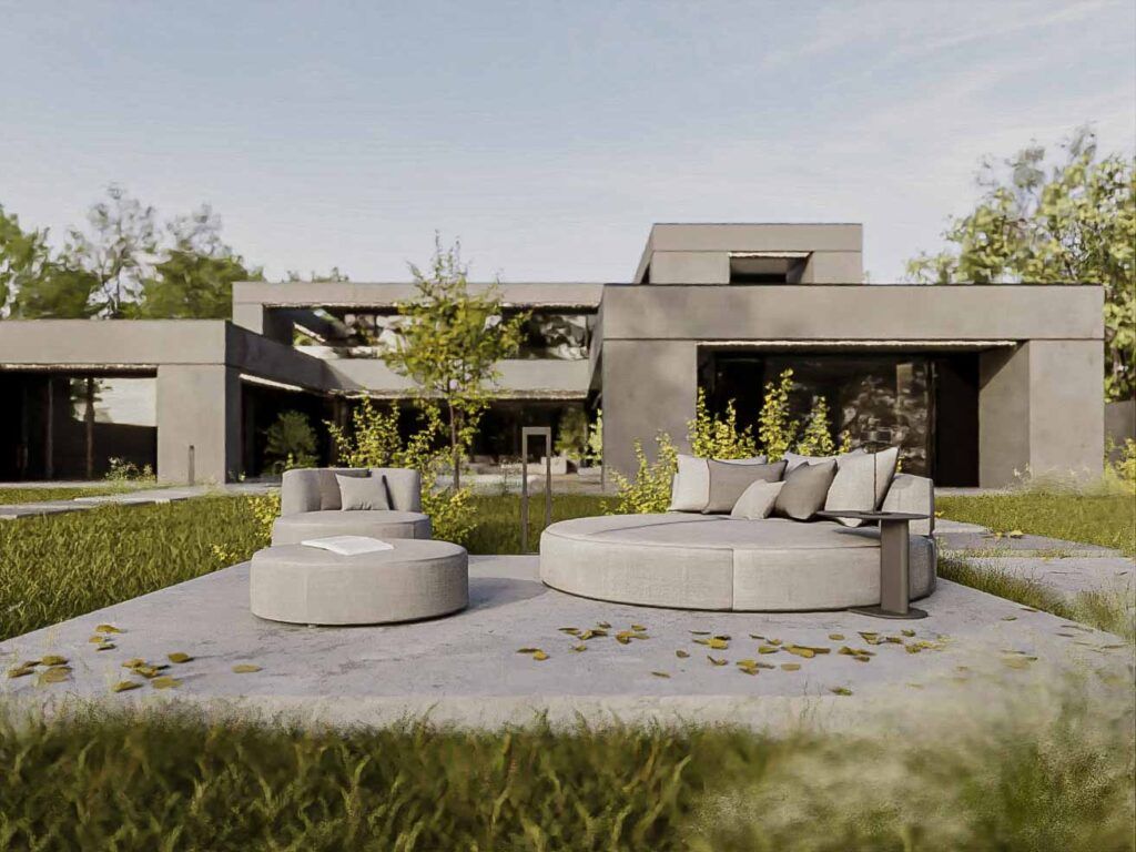 z basenem, sauną i siłownią, zaprojektowana jako domowa przestrzeń regeneracji. Willa posiada również niezależną przestrzeń biurową połączoną z showroomem, odpowiadającą potrzebom pracy i reprezentacji.