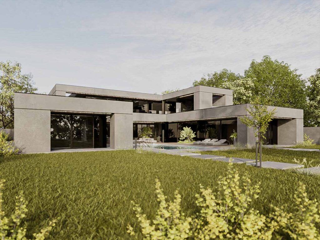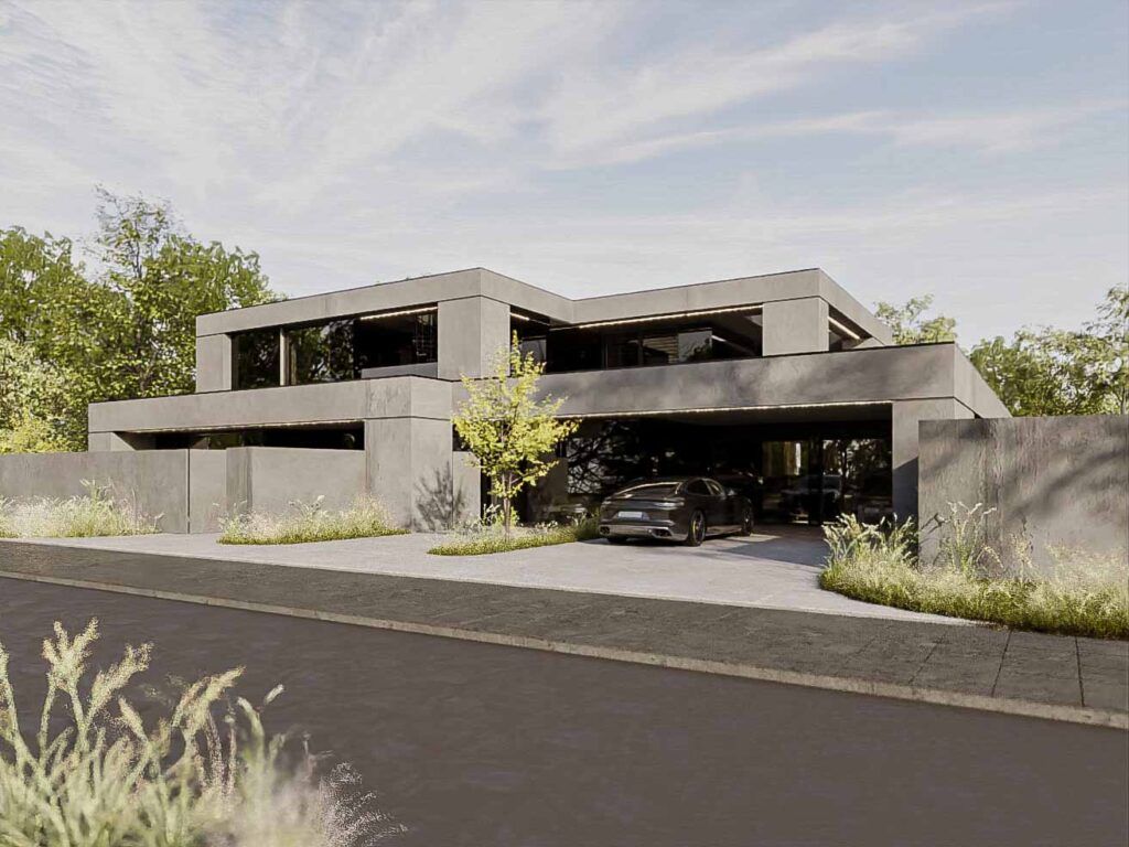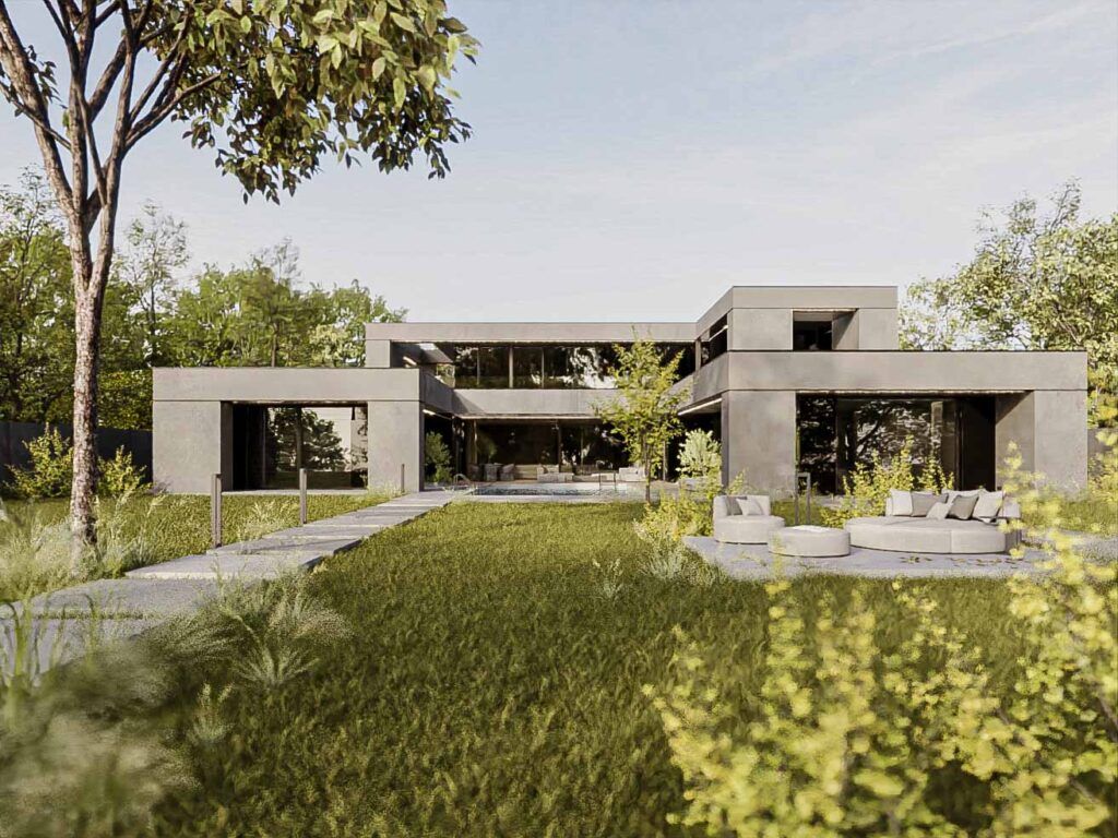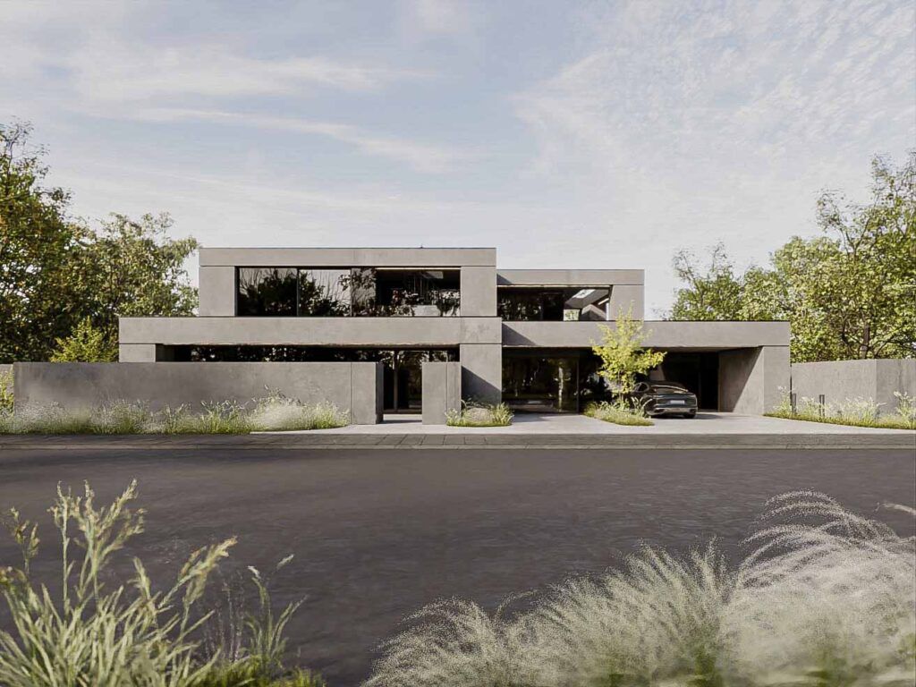 Nowoczesna willa blisko centrum Wrocławia o powierzchni ok. 570 m²  to kompleksowy projekt obejmujący architekturę, wnętrza oraz zagospodarowanie terenu – opracowane jako jedna, konsekwentna wizja.