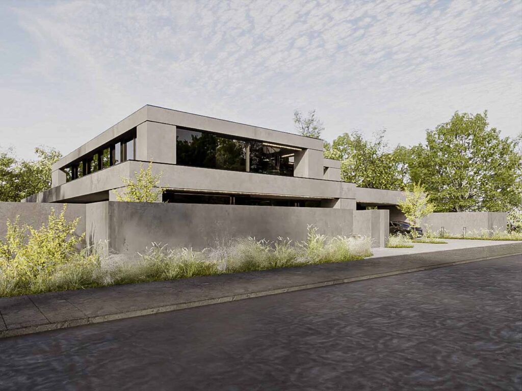 Wyrazista bryła inspirowana brutalizmem została oparta na ponadczasowej palecie materiałowej: betonie architektonicznym, szkle i stali. Surowość formy równoważy precyzyjnie zaprojektowana funkcja