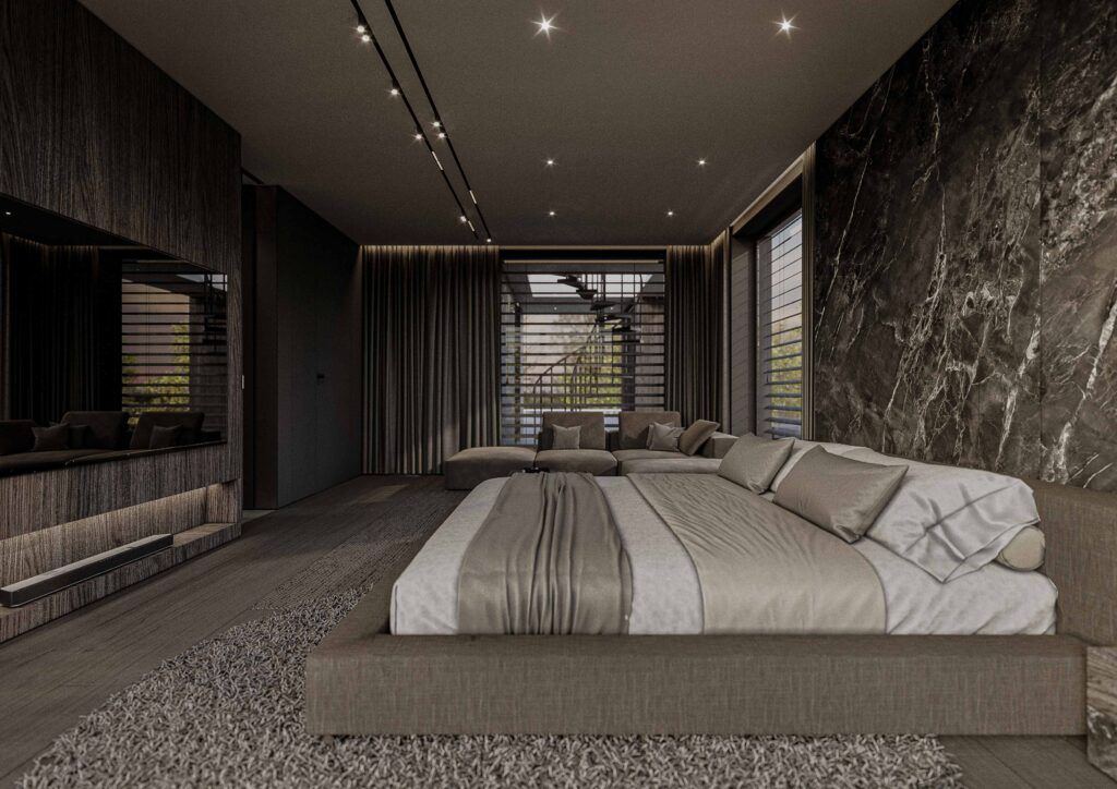 Część prywatna obejmuje komfortową strefę nocną wraz z master suite, zapewniającą pełną prywatność mieszkańcom. Uzupełnieniem programu funkcjonalnego jest rozbudowana strefa wellness